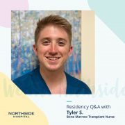That initial conversation set Tyler on an exciting career path with Northside. Tyler went straight from nursing school to the Northside Nurse Residency Program. Thanks to the mentorship he received in the program, he became thoroughly prepared for his current role with the BMT team. Tyler says, “My preceptors were awesome. They were very good at helping you learn the floor. It was a smooth transition – going from new grad, to learning everything with the residency, to being on my own.”