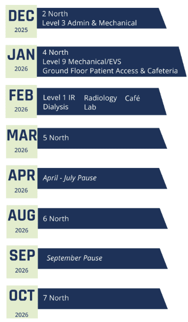 A lot has happened at Northside Gwinnett this year as we continue to grow our facilities and expand our clinical capabilities. The new Gwinnett Tower floors will open in phases starting December 2025, with built-in pauses to allow leadership to evaluate Northside Gwinnett’s needs and make informed decisions regarding the timeline. The current schedule is shown below. Please continue to check with us for the latest schedule and timing of the Tower opening.